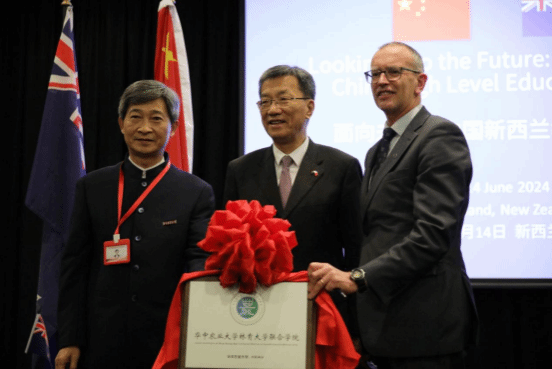 教育部部长怀进鹏(中)见证华中农业大学林肯大学联合学院揭牌仪式