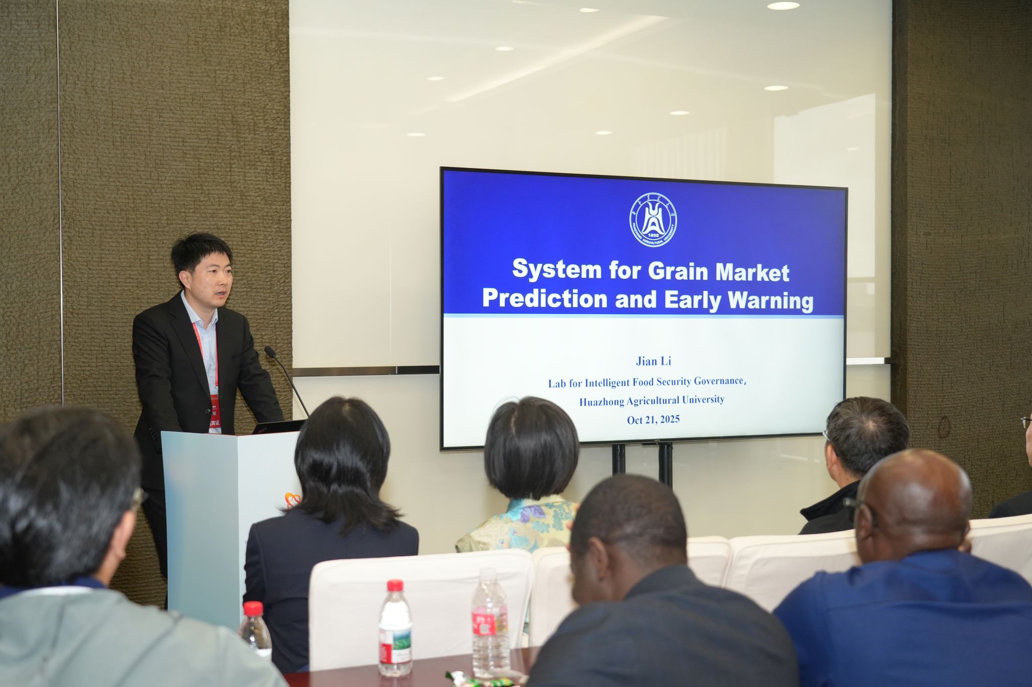 开幕式后进行全球粮食安全数智治理成果发布,经济管理学院熊航教授发布粮策大模型(AgLAMP),该模型构建 “知识—数据” 双驱动框架,实现多维度个体决策仿真,为农业政策提供精准事前评估工具;李剑教授发布粮食市场预测与预警系统,该系统整合多维度数据,实现对以玉米为主的粮食作物的产量和价格的精准预测。21日晚间的央视新闻联播报道了论坛成果发布环节的相关画面。