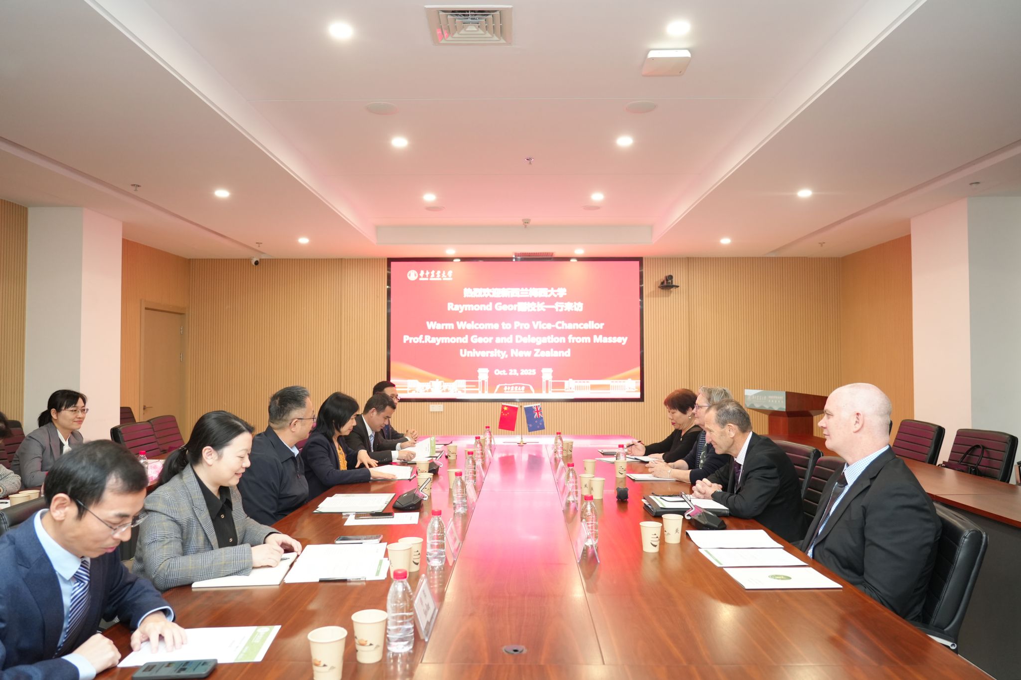 新闻网讯(通讯员 付楠 任丽红 )10月23日至24日,新西兰梅西大学副校长Raymond Geor教授率代表团访问我校,围绕推动动物科学专业合作办学、拓展农业与兽医领域合作开展深入交流。代表团成员包括梅西大学农业与环境学院副教授Penny Back、国际关系部副部长Craig Lyons及国际关系高级顾问彭平。