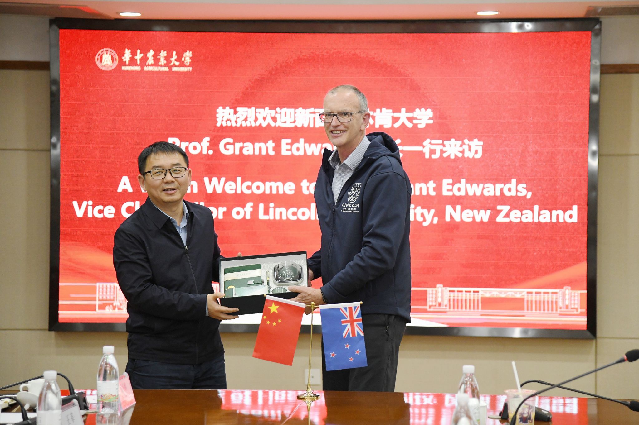 Grant Edwards高度赞赏我校在农业教育和科研创新方面取得的成就。他表示,新西兰林肯大学与华中农业大学在办学理念、学科特色和发展目标上高度契合,双方合作基础坚实、前景广阔。他希望两校能在联合科研平台建设、师生互访、博士联合培养等方面进一步深化合作,共同推动农业科技创新和人才培养。