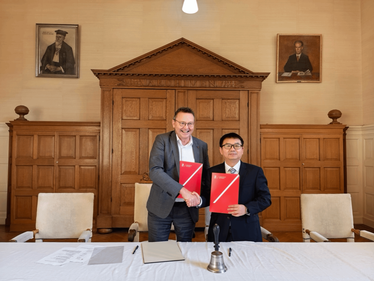 严建兵校长和Jouke de Vries校长共同签署双博士学位合作协议(刘培文供图)